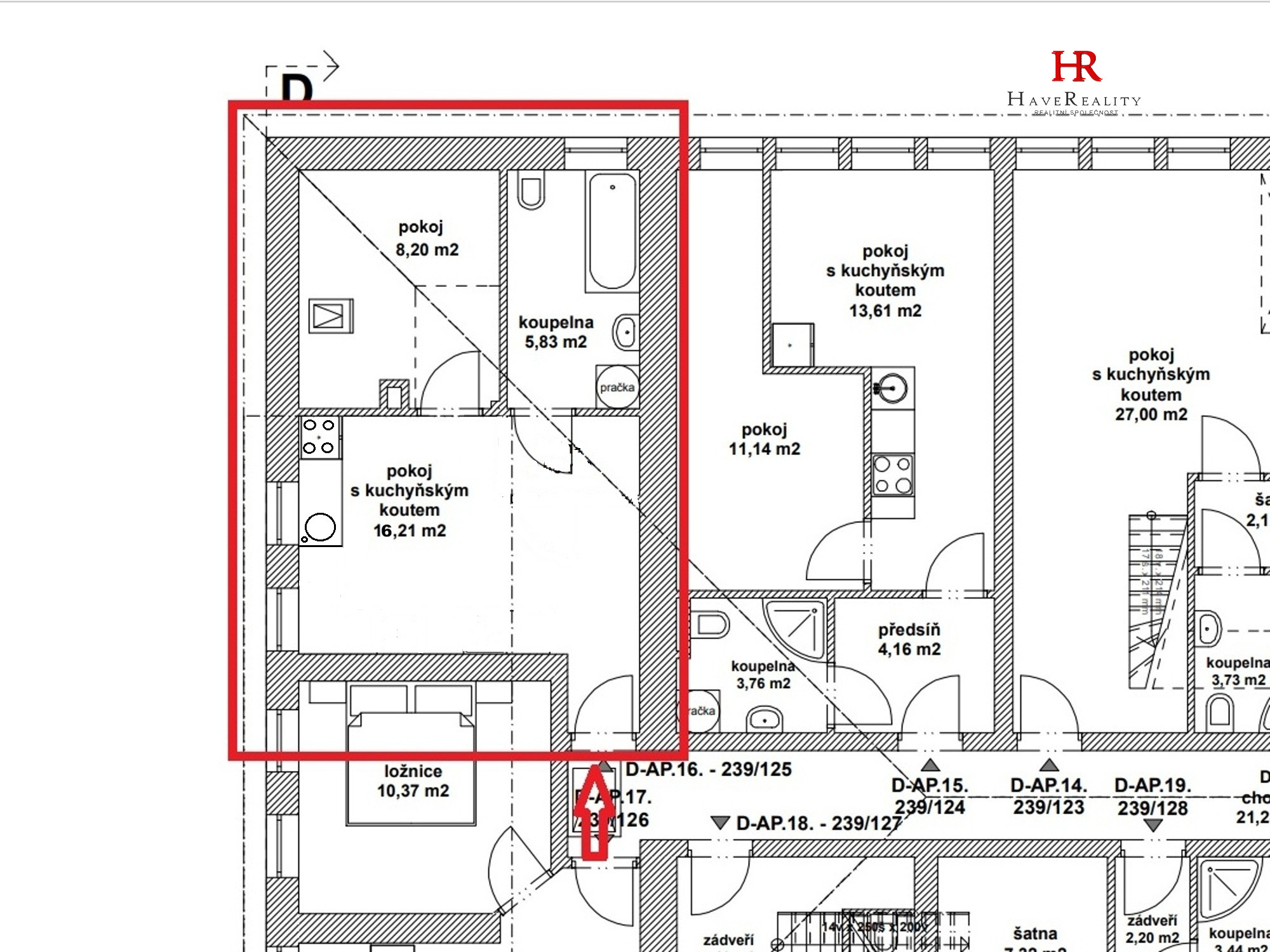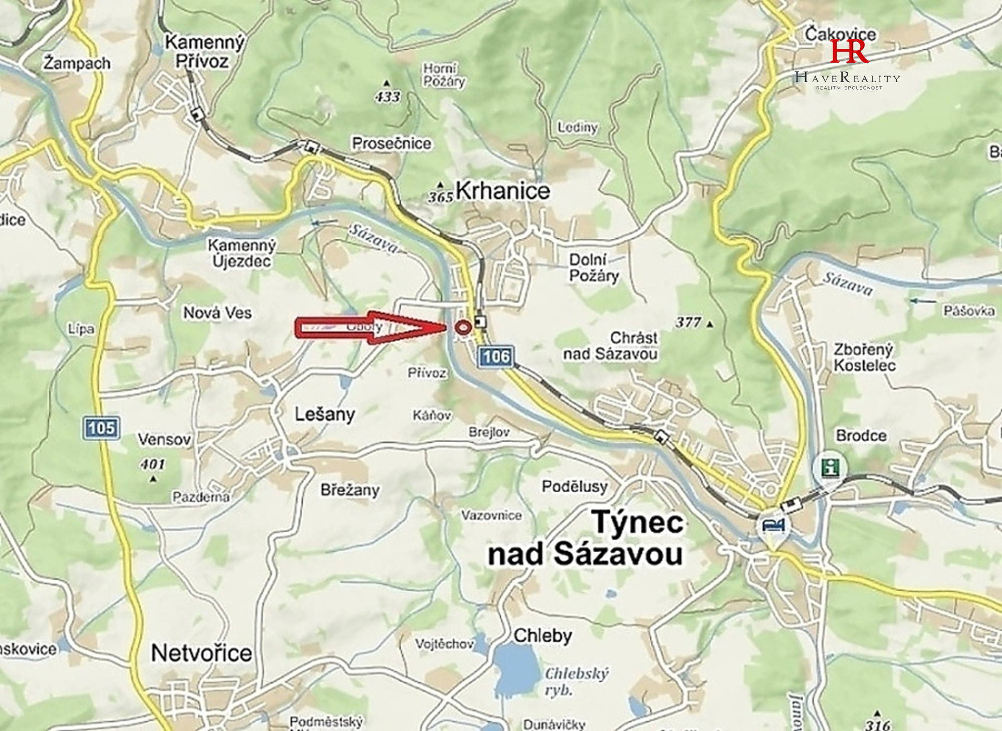 Nabízíme k pronájmu bytovou jednotku 2+kk s vyhrazeným parkovacím stáním. Výměra bytu 30 m2. Byt se nachází v 2. nadzemním podlaží z celkových 3. nadzemních podlaží, ve zděném bytovém domě v Chrástu nad Sázavou č.p. 239, části obce Týnec nad Sázavou, okr. Benešov (vlaková zastávka Krhanice). Dispozice bytu 2+kk, obývací pokoj s kuchyňským koutem 16,21 m2, pokoj 8,2 m2 (s úkosy střechy – podkrovní), koupelna s vanou, umyvadlem a toaletou 5,83 m2. Okna – plastová, střešní – dřevěná. Podlahy – plovoucí podlaha, dlažba. Topení – ústřední (plynová kotelna v domě). Ohřev vody – vlastní bojler. Budova splňuje díky zateplení nejnovější energetické normy. PENB třída D. Do bytu je zaveden internet a kabelová TV. V domě není výtah. V bytě není balkon a není k dispozici sklep. Byt se pronajímá vč. kuchyňské linky, jinak bez vybavení. K bytu náleží vyhrazené parkovací stání na parkovišti za domem. Nedaleko domu jsou tenisové kurty, restaurace, prodejna potravin, MŠ, hezká příroda, řeka Sázava. ZŠ se nachází v Krhanicích vzdálených 1,5 km. Veškerá občanská vybavenost v 5 km vzdáleném Týnci nad Sázavou. Dobré spojení do Prahy, zastávka bus – PID, nebo vlak. Vzdálenost do Benešova je cca 10 km a do Prahy cca 30 km. Měsíční nájemné činí 10.700 Kč + poplatky na služby pro 1 osobu 1.600 Kč (každá další osoba v bytě + 700 Kč) + elektřina, která bude přepsána na nájemce. Celkem tedy pro 1. osobu v bytě 12.300 Kč/měs. + spotřebovaná elektřina. Majitel vyžaduje jistotu (kauci) ve výši 15.000 Kč. Provize RK také ve výši jednoho měsíčního nájmu vč. poplatků, tedy 12.300 Kč vč. DPH, hradí nájemce při podpisu nájemní smlouvy. Volné od 1.2.2026. Vhodné pro max. 2 osoby v bytě. Pro sjednání nezávazné prohlídky nás prosím kontaktujte na uvedených číslech.