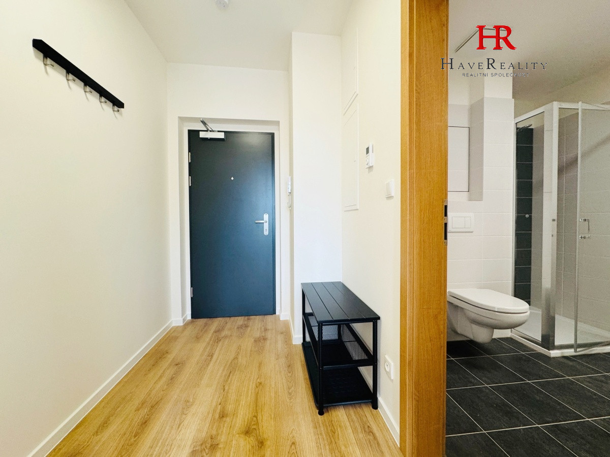 S platností od dubna 2026 si Vám dovolujeme nabídnout k pronájmu krásný, netradičně řešený byt 1+kk v novostavbě, o velikosti 38 m2 s terasou 12 m2, vlastním parkovacím stáním a sklepem, umístěný v 5. NP. Bytový dům splňuje nejvyšší nároky a standardy bydlení. Byt je dispozičně členěn na: vstupní předsíň 3,8 m2, koupelnu s WC 4,4 m2 a obývací pokoj 29,6 m2 s novou kuchyňskou linkou a vstupem na terasu 12 m2. Dům je zateplený, nízkonákladový, splňuje PENB třídy „B“ a má výtah. V bytě se nachází moderní kuchyňská linka s vestavnými spotřebiči: (pečící trouba, indukční varná deska, mikrovlnná trouba, lednice s mrazákem a digestoř). Vytápění v domě a ohřev teplé vody zajistí centrální plynový kotel. V bytě jsou rozmístěny radiátory a v koupelně topný žebřík. Každá jednotka má svůj vlastní elektroměr, měřiče spotřeby studené i teplé vody a spotřeby tepla. Na podlaze je plovoucí podlaha v dezénu přírodního dřeva a v koupelně keramická dlažba a sprchový kout. Okna jsou plastová, zvenčí šedá, uvnitř bílá, s izolačními 3 skly. V oknech budou instalovány žaluzie. Vstupní dveře do bytu jsou protipožární, k dispozici je domácí telefon. V suterénu domu se nachází parkovací stání pro vůz v garáži. Sklepní kóje patřící k bytu je umístěna na patře. Požadované měsíční nájemné za byt včetně parkovacího stání v garáži a sklepa činí 20.000,- Kč + záloha na spotřebu médií cca 3.023,- Kč. Spotřebu el. energie v bytě si nájemce přihlásí na sebe u dodavatele. Jistota (dříve „kauce“) činí 40.000,- Kč a je vratná po řádném ukončení nájemního vztahu. Provize pro RK činí 1měsíční nájemné. Nabídka je určena pro nekuřáky bez domácích mazlíčků. Upřednostňujeme dlouhodobý pronájem. V Benešově je veškerá občanská vybavenost v místě a dobré dopravní spojení do Prahy a Českých Budějovic. Prohlídky objektu jsou možné kdykoli po dohodě. V případě Vašich dotazů nás neváhejte kontaktovat na uvedeném telefonním čísle.